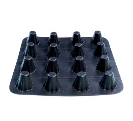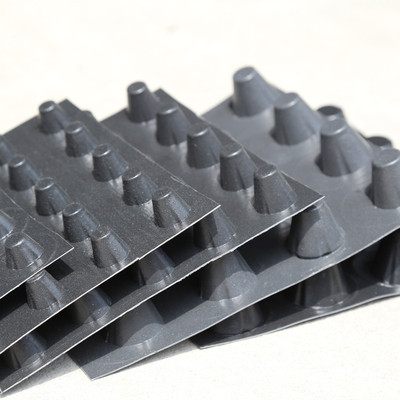 凹凸型的排水板施工由于正反面的形狀不一樣,效果也不同所以大家在施工時要注意正反面的放置問題。